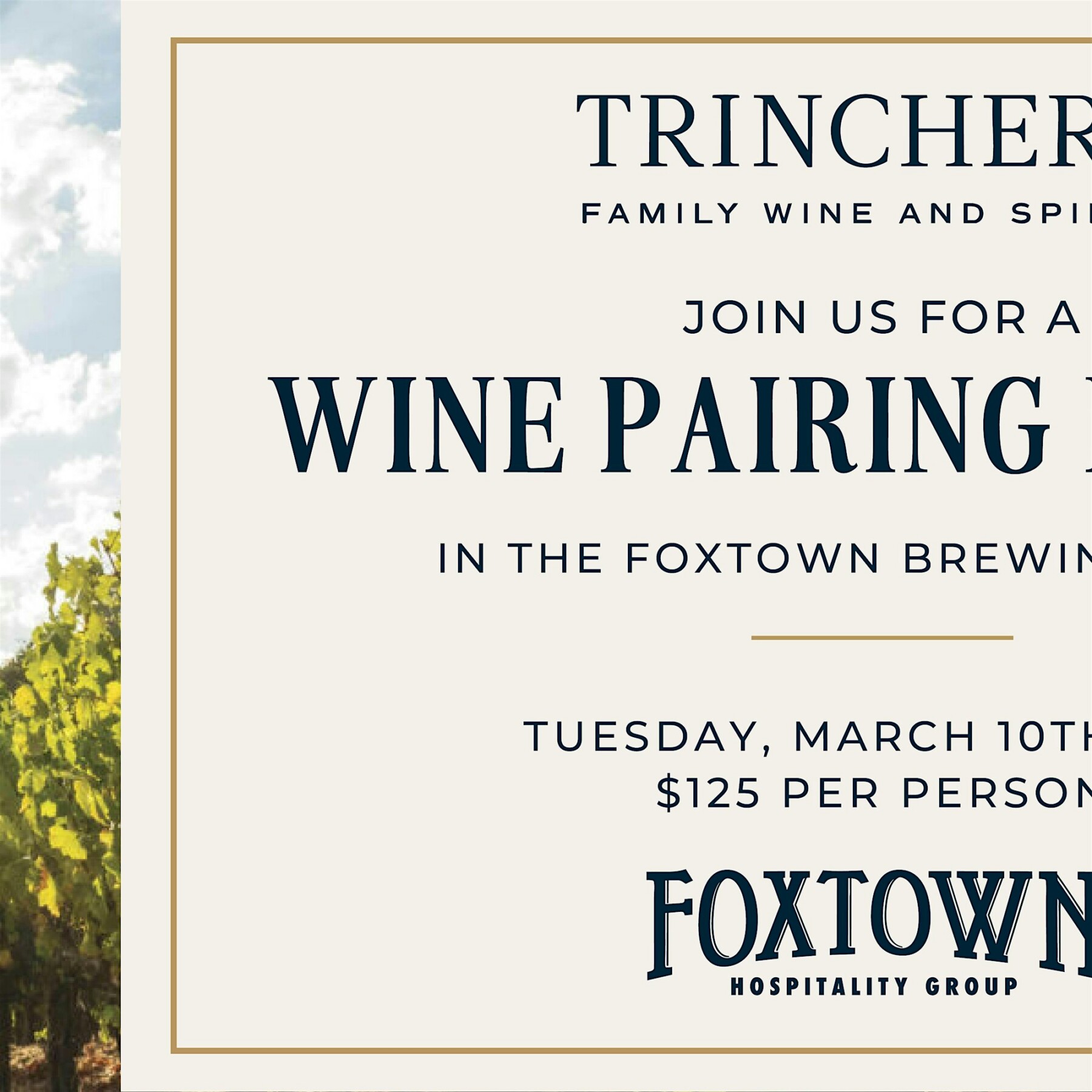 Join us in our historic lager caves for an unforgettable Trinchero Wine Dinner, where a curated multi-course menu meets expertly paired wineJoin us for an unforgettable evening celebrating the wines...
