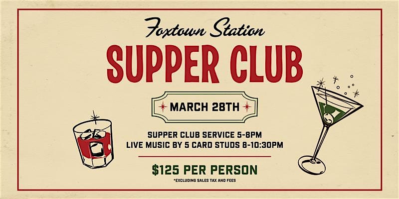 Good food, craft cocktails & great energy. Join us for Supper Club Night at Foxtown Station at stay for live music afterwards!Supper Club at Foxtown StationStep into an evening of...